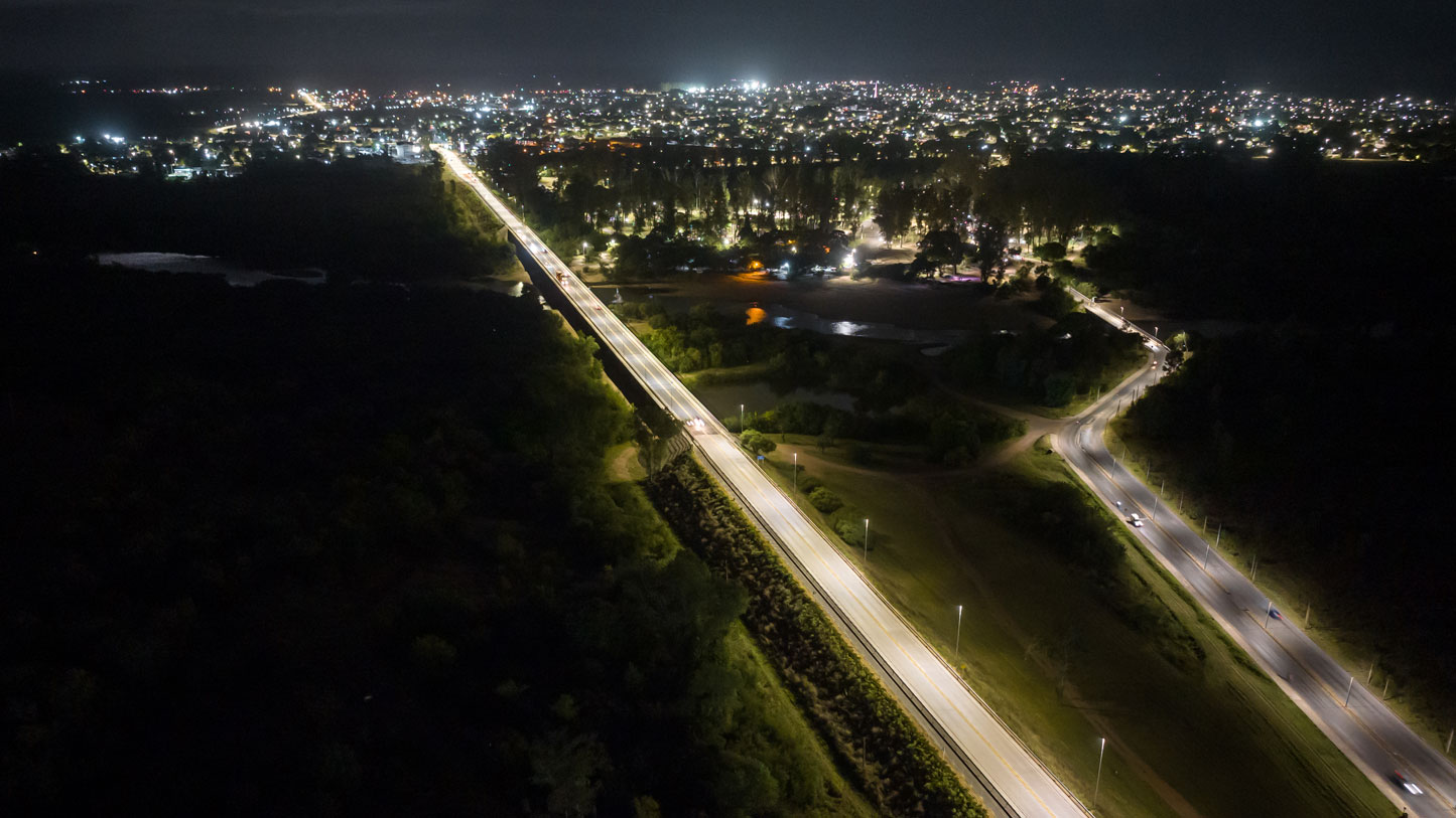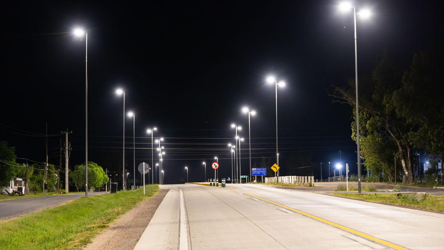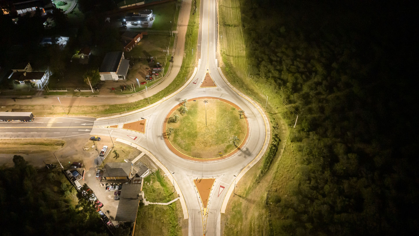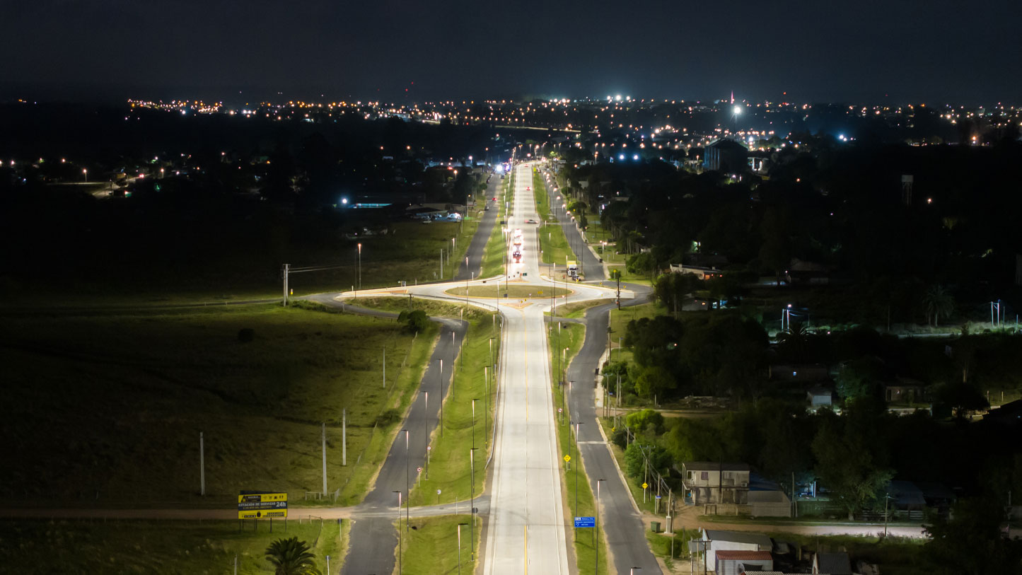 El alcance incluyó la iluminación de rotondas y sus accesos, calles de servicio y la adecuación del sistema existente sobre el puente del Río Olimar.