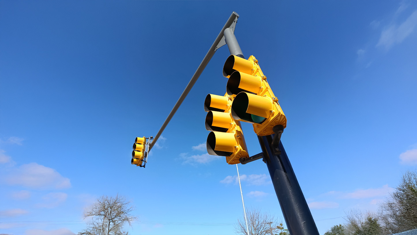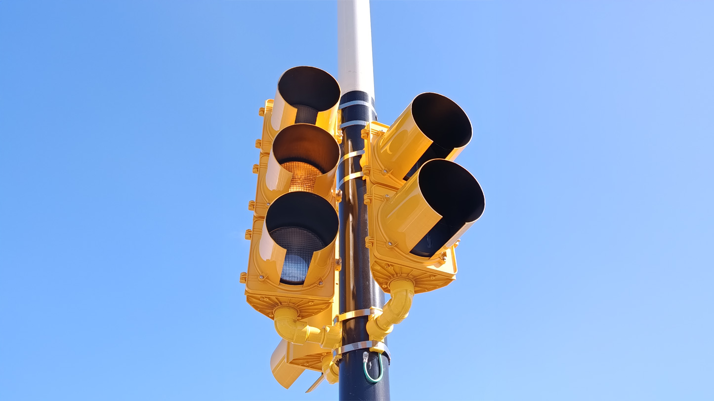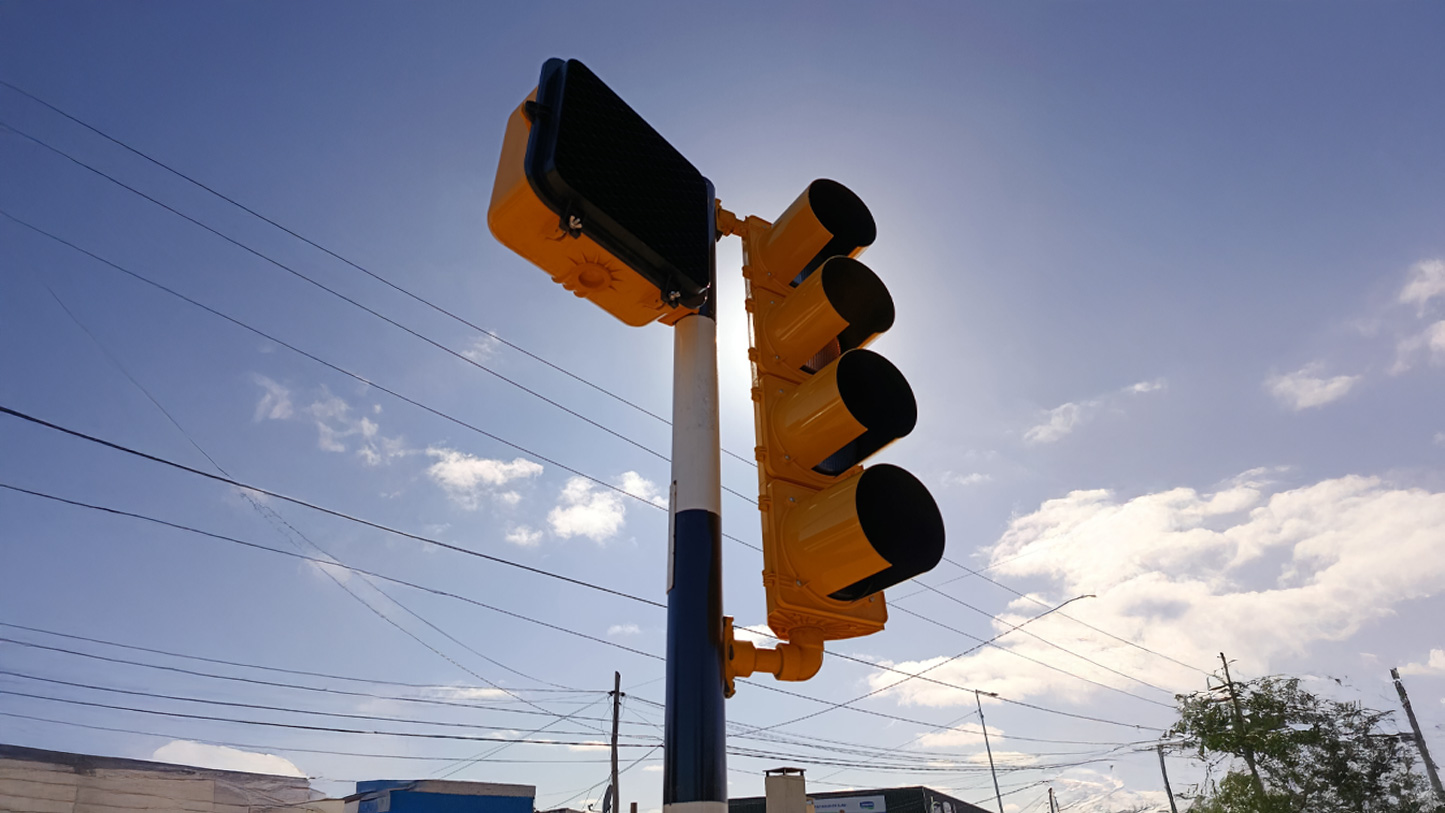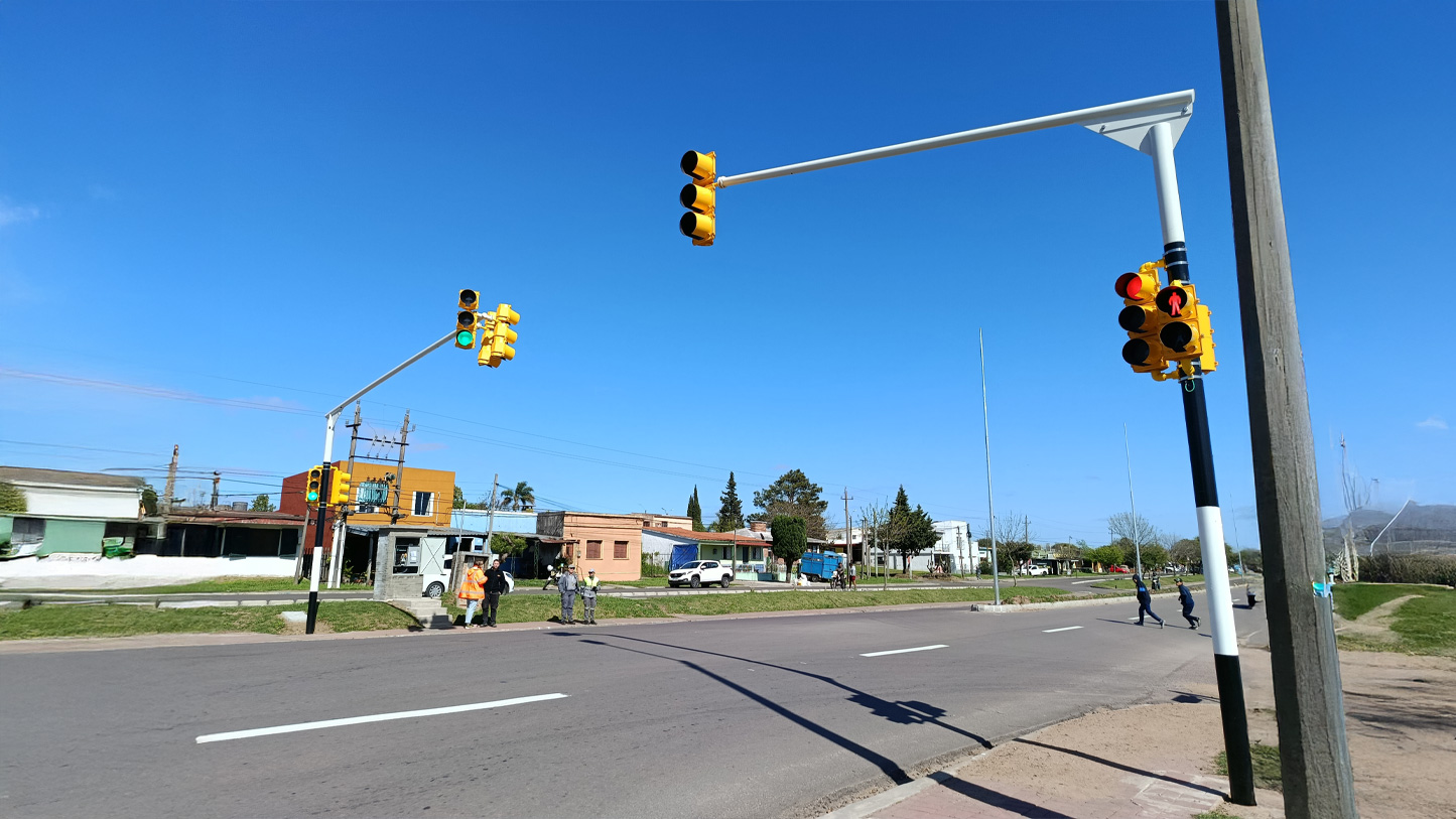 Fueron instaladas columnas rectas y pescantes, peatonales con cuenta regresiva y los controladores de tránsito correspondientes.